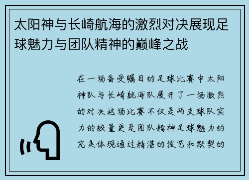 足球不仅是一项运动,更是一种文化和精神的象征。无数足球明星在追求梦想的道路上,留下了许多激励人心的经典语录。这些语录不仅展现了他们对足球的热爱和执着,也传递了积极向上的生活态度。通过双语分享这些经典语录,我们可以感受到每个成功背后所蕴含的努力与坚持。在这篇文章中,我们将从四个方面探讨“足球明星经典语录如何激励我们追逐梦想”,分别是:信念与坚持、团队合作、面对挫折,以及不断追求卓越。希望这些智慧的话...