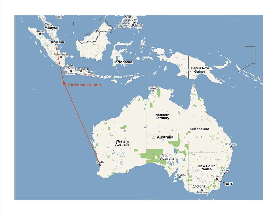 澳大利亚的国土主要包括澳洲大陆、塔斯马尼亚岛、圣诞岛和科科斯群岛。微信设置的圣诞岛正是此地。
